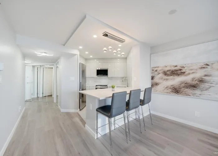 O Breathtaking 2 Bedroom Condo In Yaletown With A View Of English Bay Vancouver está situado no bairro Centro de Vancouver, e oferece acesso rápido a Granville Island, que fica a aproximadamente 600 metros de distância.